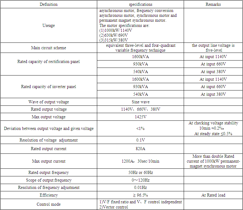 - The rated capacity of frequency conversion equipment can be as high as 1600kVA under the output condition of 1140V.