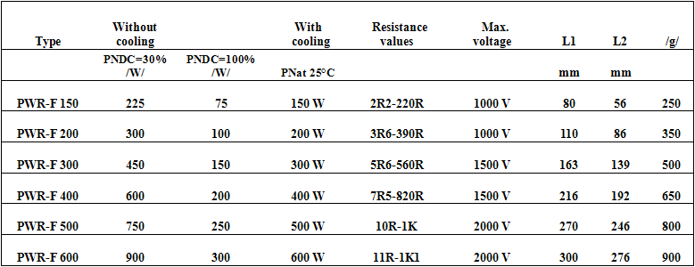 Wire resistors in aluminium profile combine the high pulse load capacity of conventional resistor materials with optimised thermal conduction and a high degree of protection. Assembly on a surface with good thermal conduction properties improves the heat dissipation additionally and leads to an increased load capacity. The series PWR-F satisfies the requirements of UL508 and is particularly suitable for applications as brake resistor, charging