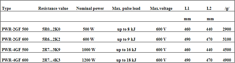 The type series PWR-GF consists of resistors of the type series PWR-R which are switched variably and connected