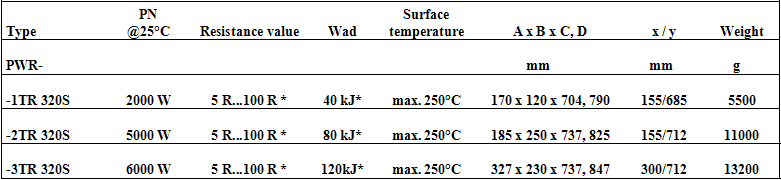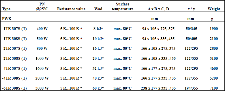 The resistor series PWR-X is a ready-to-install combination of tube resistors. Depending on the casing size and the installed tube resistor, a performance range from 400 W to 6 KW is covered. The type series are chara-