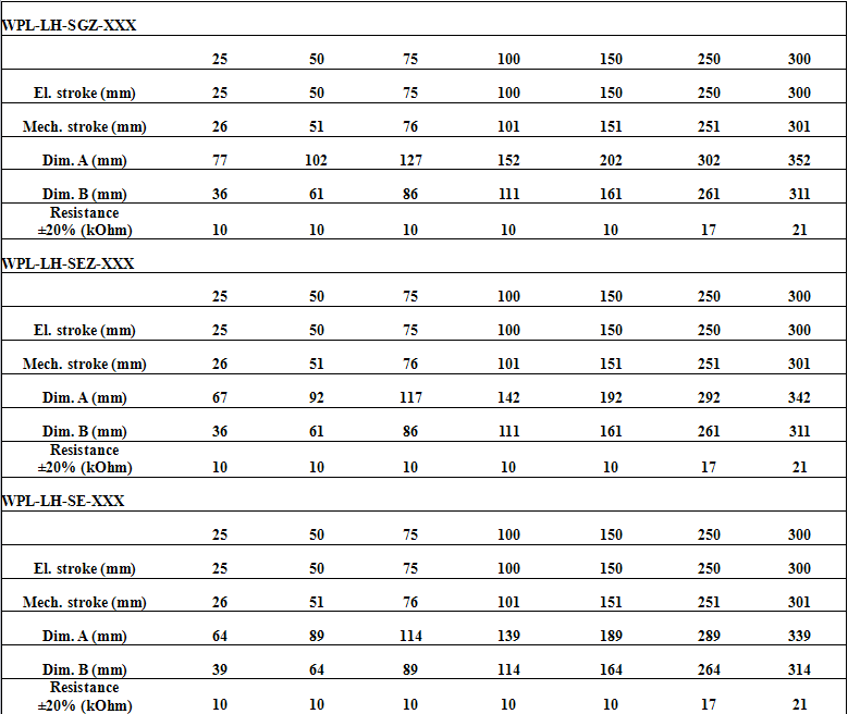 The potentiometric conductive plastic position sensor WPL is available in different designs.