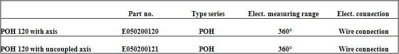 via Hall effect as abso-lute measuring rotary sensor even after blackout. The POH series is available with a