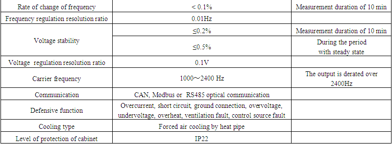 - Adopt AFE four-quadrant rectification technical scheme at the input side, the power factor at the grid side is high, the current harmonic on grid side is low, the public DC bus voltage is accurate and steady, and it is not affected by the network voltage and fluctuation of load, and the quality of output electric energy can be guaranteed.