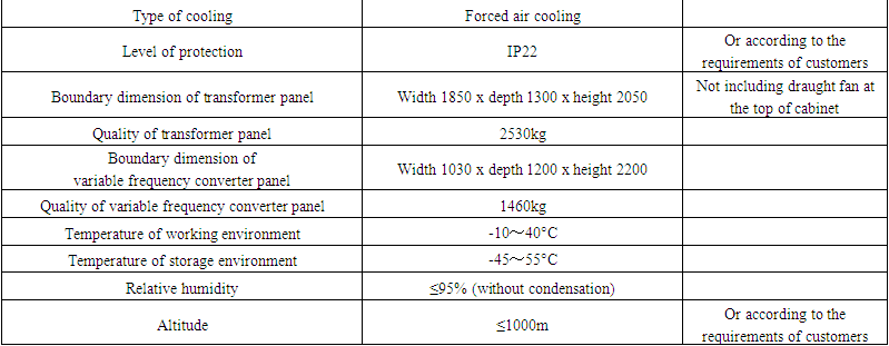 - The whole set of variable frequency converter consists of 1 variable frequency converter panel and 1 transformer, with a compact structure and small floor space.